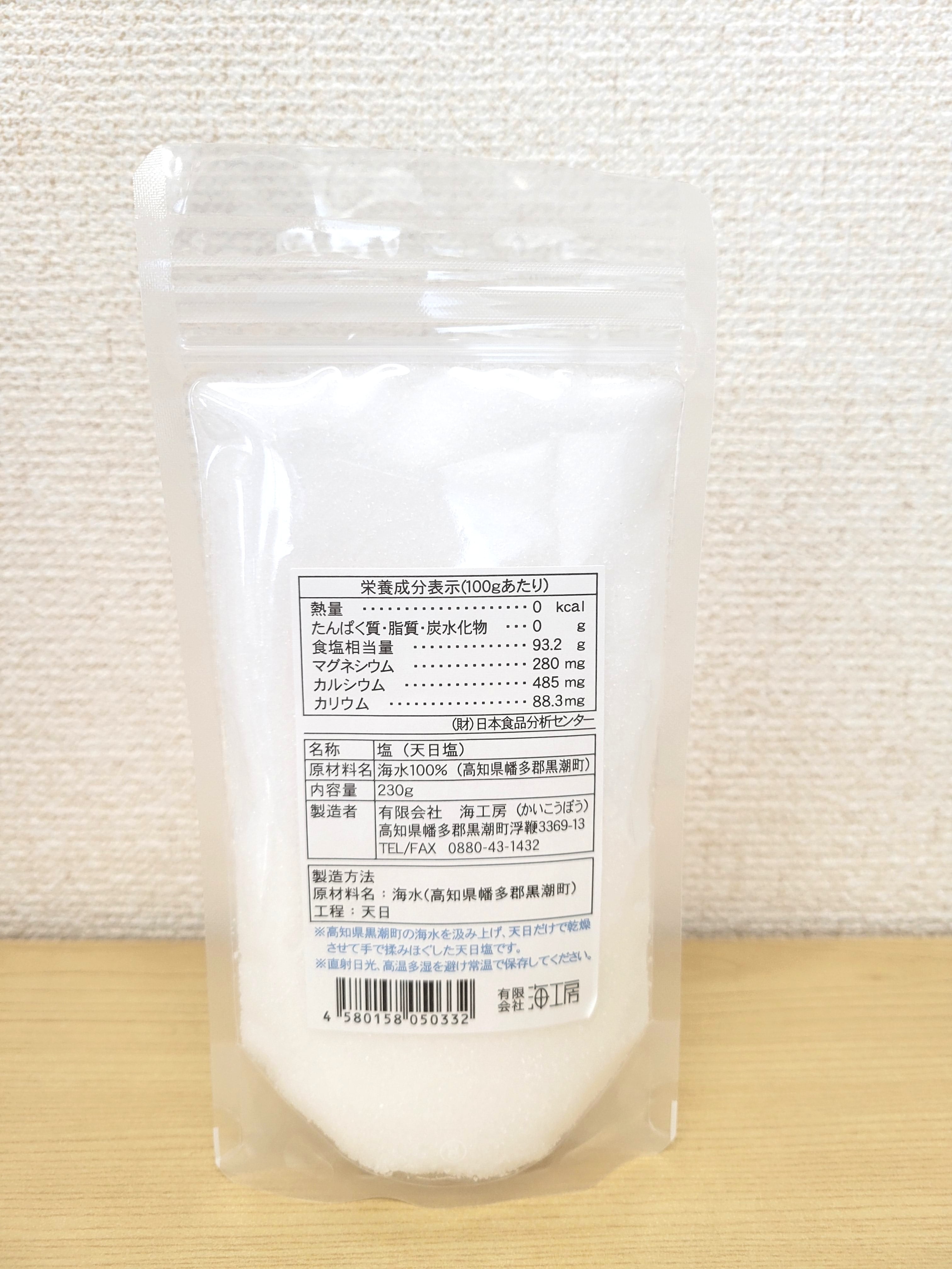 高知県幡多郡黒潮町の美しい海水を汲み上げ、加熱処理を一切せず天日だけで乾燥させています。